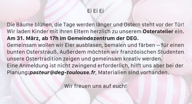 Wir freuen uns, dass Sie den Weg zu uns gefunden haben. Wir sind eine kleine, feine und überaus lebendige Gemeinde im Großraum von Toulouse, schon seit über 30 Jahren!